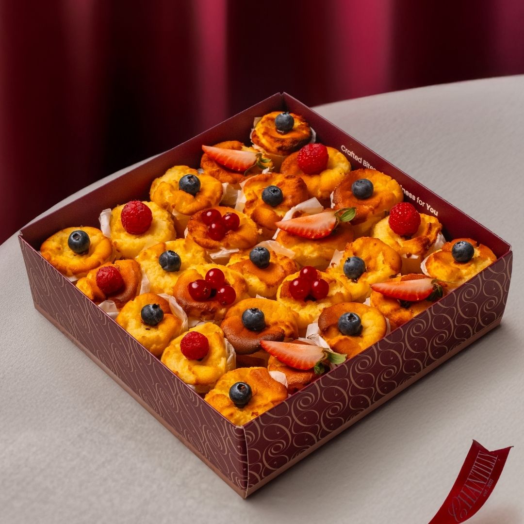في شانلي كافيه نتباهى بأعظم اختراع لميني سان سيباستيان. تتميز هذه الكعكات الصغيرة اللذيذة بحشوة كريمية غنية مع طبقة مكرملية مثالية وقشرة زبدية. تقدم كل قضمة نكهة سان سيباستيان الكلاسيكية في حجم صغير ساحر - مثالي للتذوق أو المشاركة في أي تجمع. ارتقِ بحدثك بهذه الأطعمة الرائعة التي تجمع بين الأناقة والذوق الذي لا يقاوم في كل لقمة.